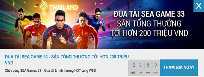 Khuyến mãi dựa vào thời gian W88 quy định, thành viên cần tham gia đặt cược vào các bộ môn SEA Games 33 với các sản phẩm của SABA/SABA C/ BTI/CMD/XJ.